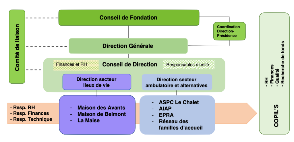 Le comité de liaison est constitué de 3 à 4 membres du Conseil de Fondation, du Conseil de Direction et des responsables d’unité.